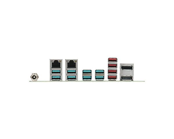 - Rich I/O: 2 Intel GbE, 8 USB 3.2 Gen2, 4 USB 3.2, 2 COM, 2 SATA 3.0, 1 SATA Power